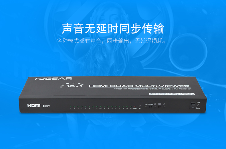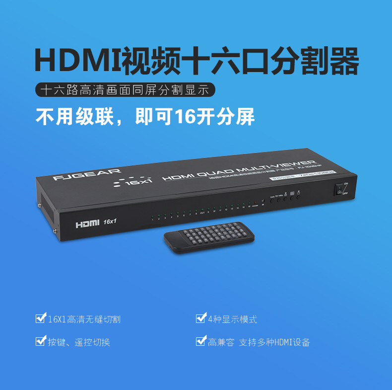 這是一款16路HDMI高清視頻畫(huà)面分割器,它將16路HDMI信號(hào)以單獨(dú)或組合的形式
