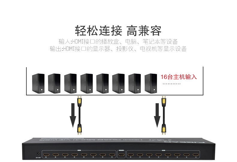 1.支持16路高清HDMI信號(hào)同時(shí)輸入,支持一路高清HDMI信號(hào)輸出