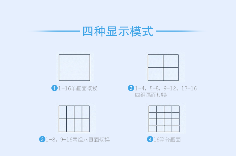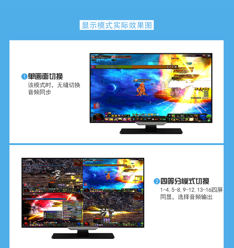 顯示在同一個(gè)顯示器上面,可在分割器上自由控制16路HDMI輸入信號(hào)的組合模式和