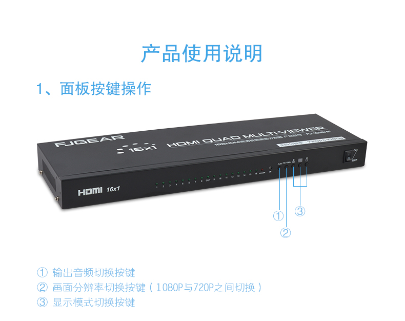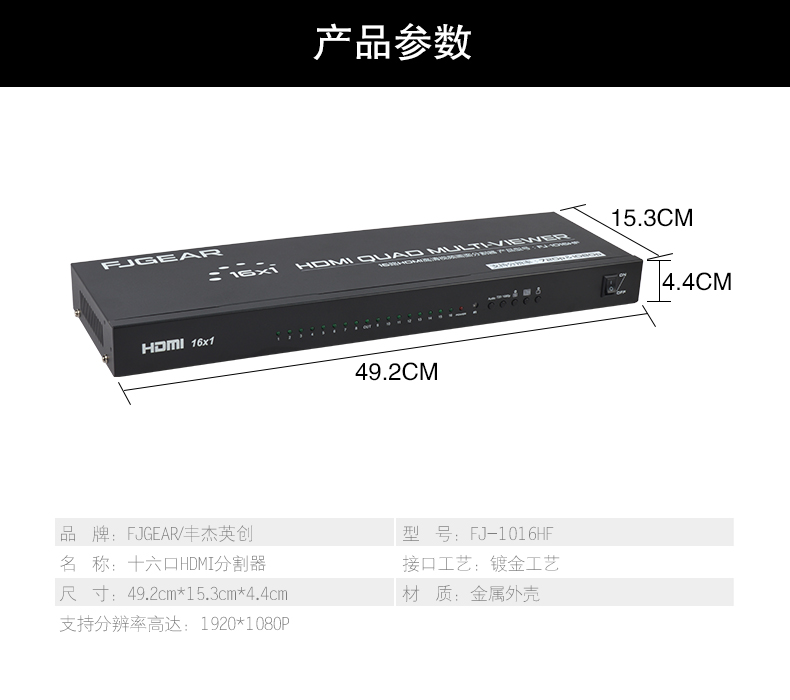 1.輸出接口形式:1 X HDMI-AF,輸出接口形式:16 X HDMI-AF