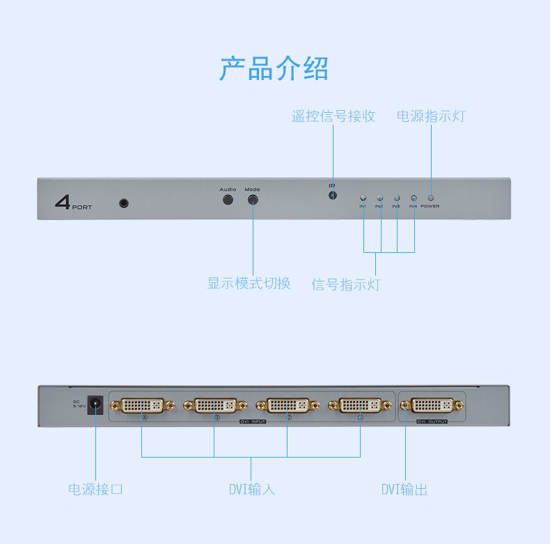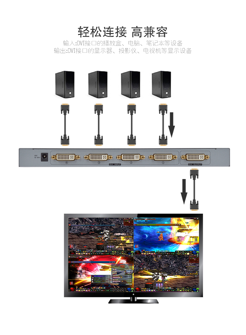 1.支持多路復(fù)用DVI 4路輸入和1路輸出