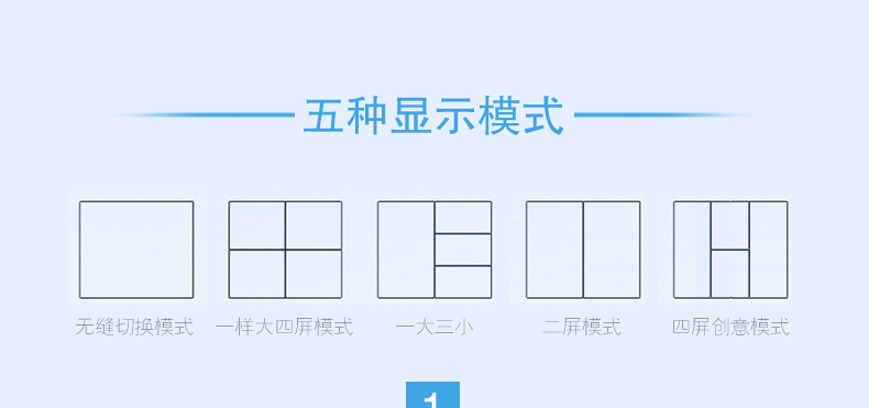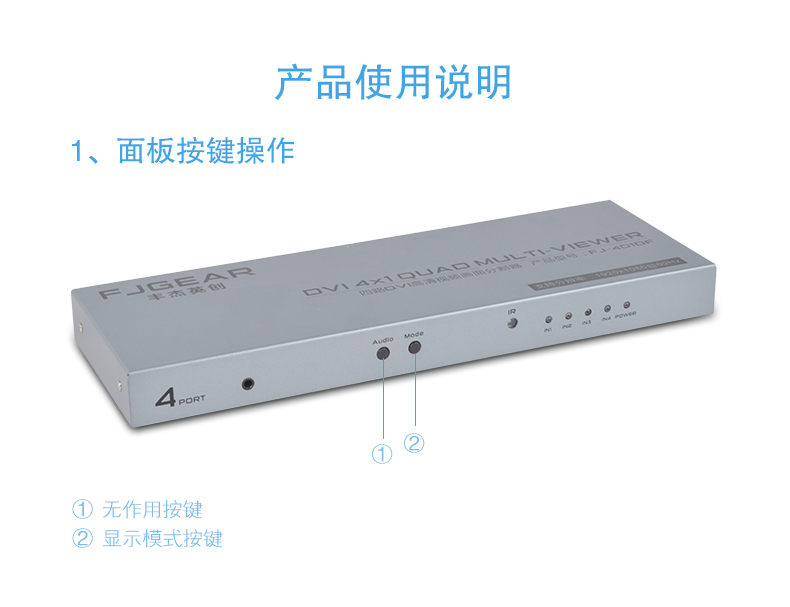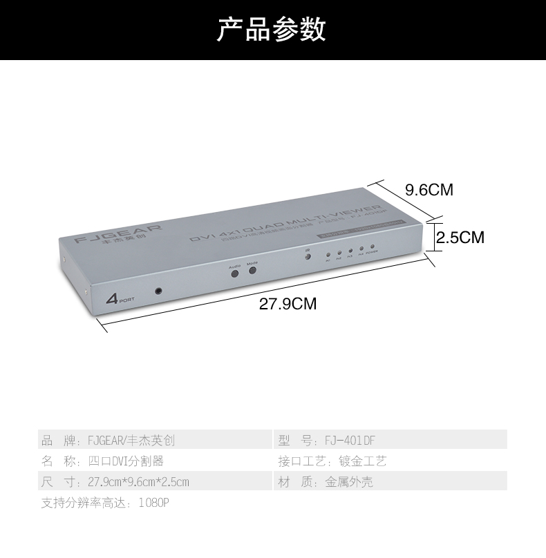 這是一個(gè)DVI接口的四路視頻畫面分割器,它將四路DVI信號(hào)單獨(dú)或以組合的形式顯示在一個(gè)顯示器上,可在分割器上自由控制四路輸入信號(hào)的輸出方式。