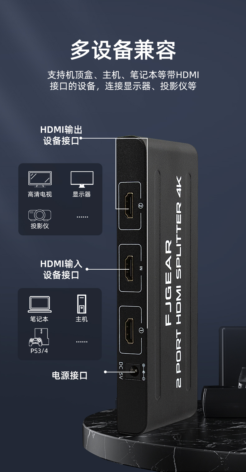 2.最高支持4K*2K@25/30Hz,向下兼容多種分辨率