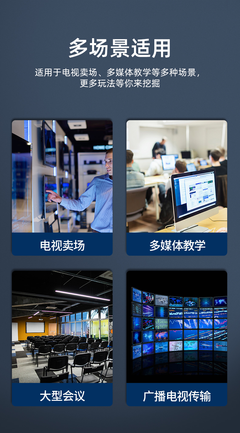9.該產(chǎn)品適用于教育、廣告、會議室、家庭視頻播放等場合