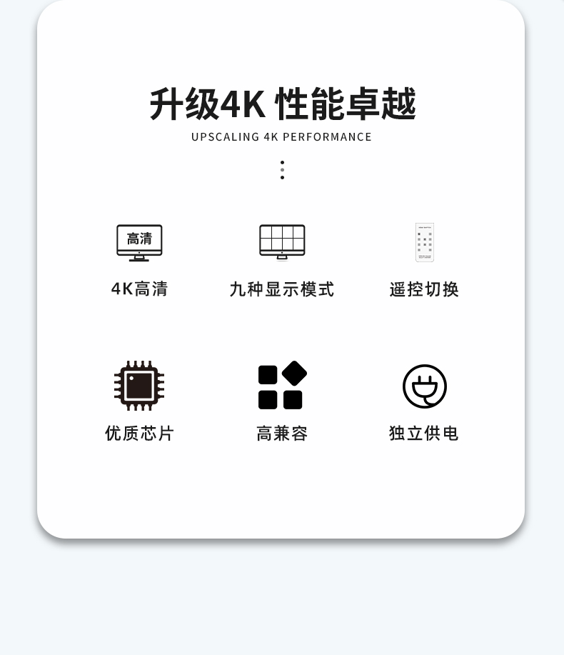 5.刷新率支持:4K30HZ,1920*1080/60/59/50/45/30/29/25/24 等