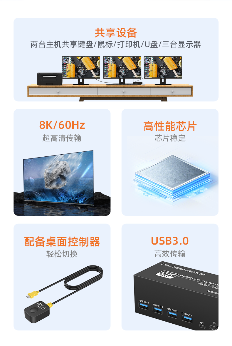 5.輸入接口:USB3.0*2+DP*4+HDMI*2