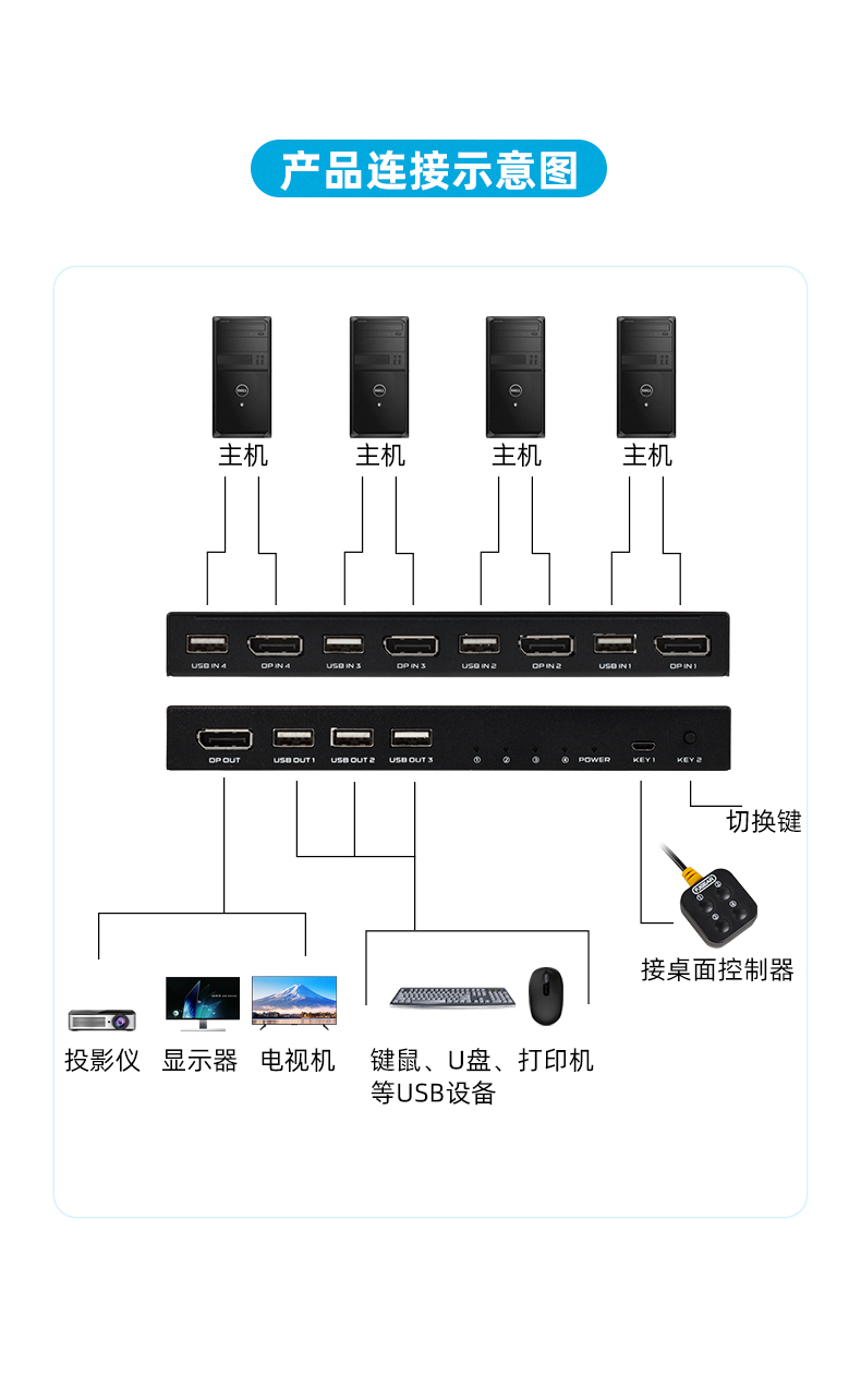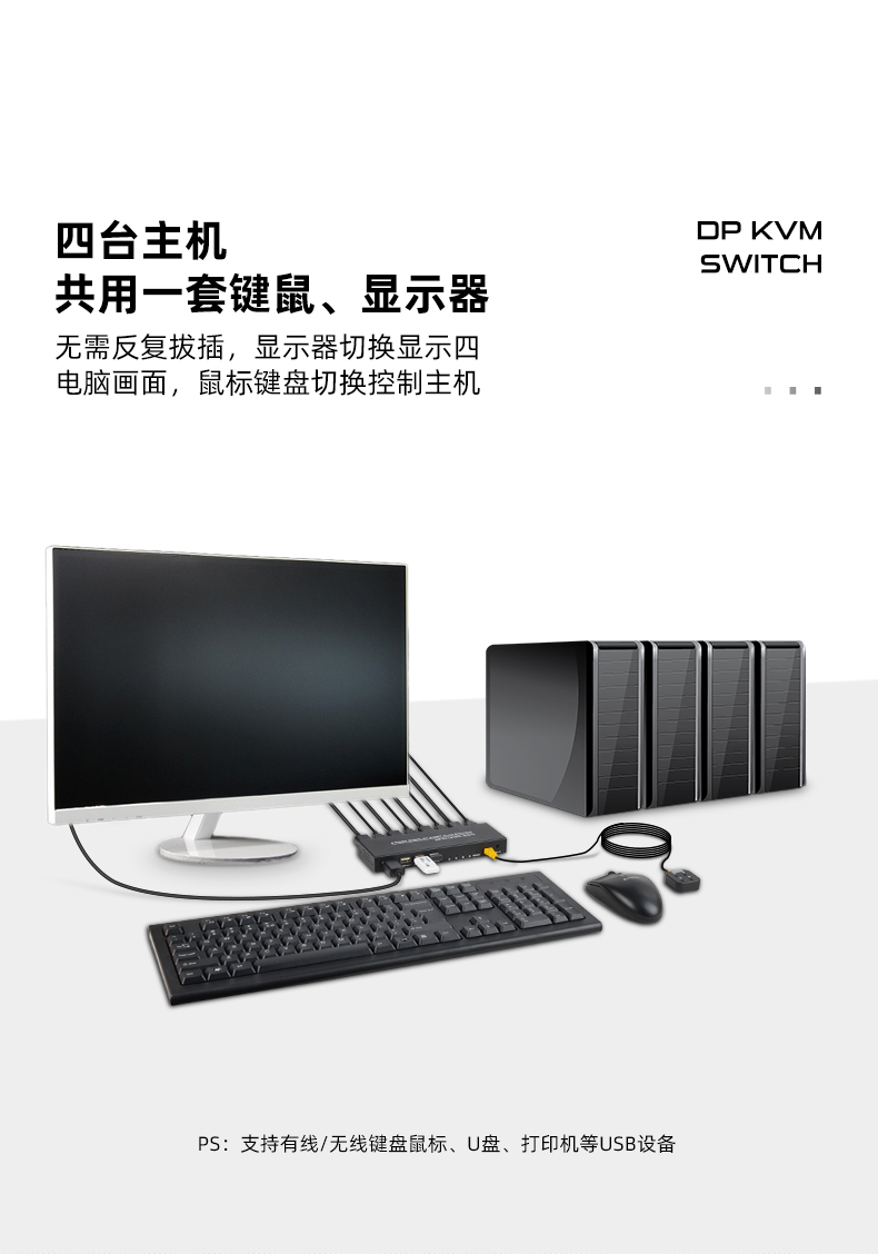 3.產(chǎn)品特性:四臺(tái)電腦共用鍵鼠顯示器