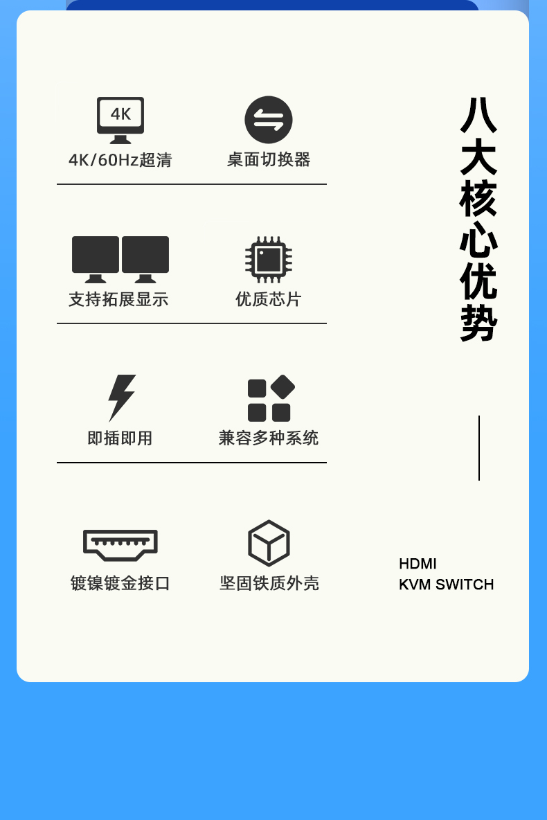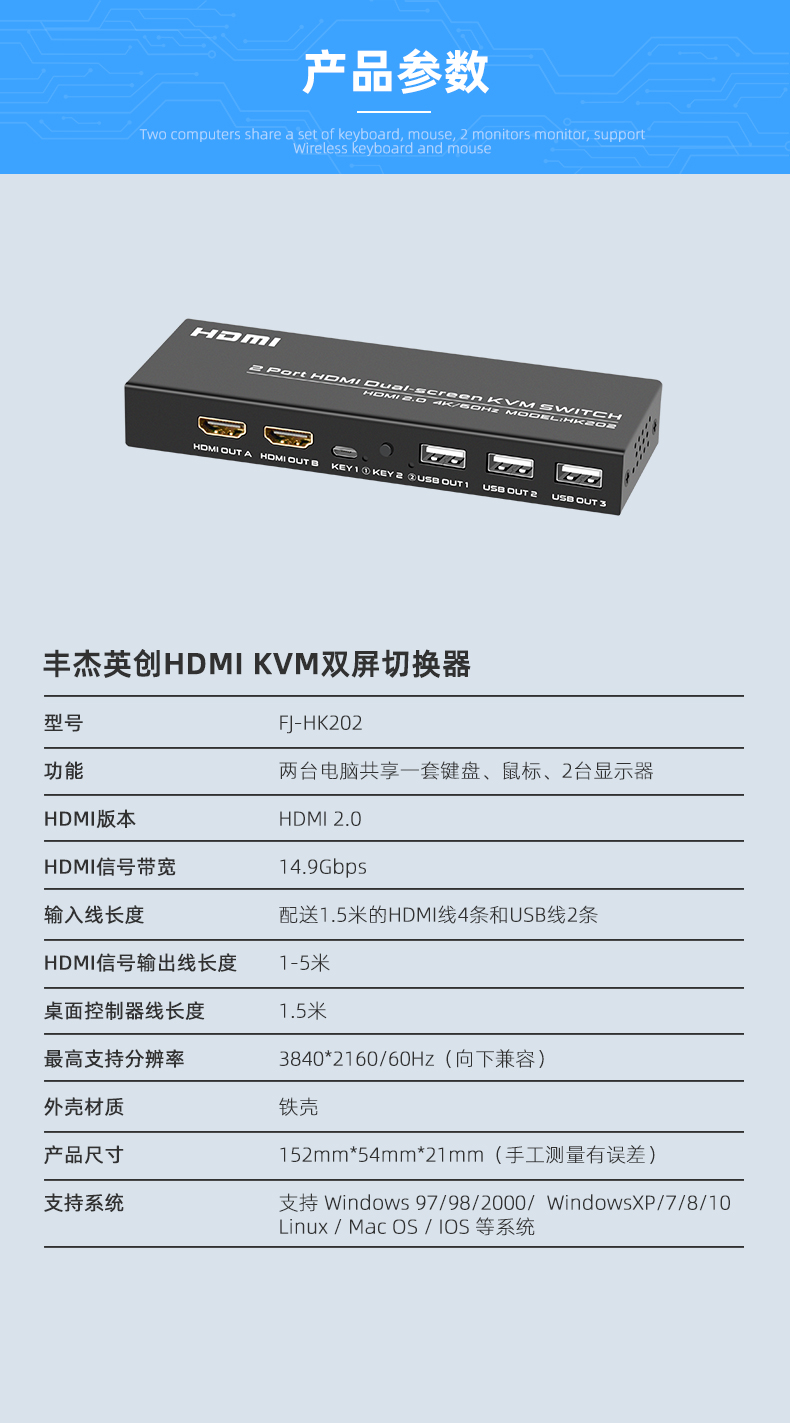 5.支持系統(tǒng):支持 Windows 97/98/2000/ WindowsXP/7/8/10 等系列系統(tǒng) Linux / Mac OS / IOS 系統(tǒng) 等,個(gè)別信號(hào)源設(shè)備接口需要轉(zhuǎn)換到與分配器HDMI-A 同等大小的接口才能使用