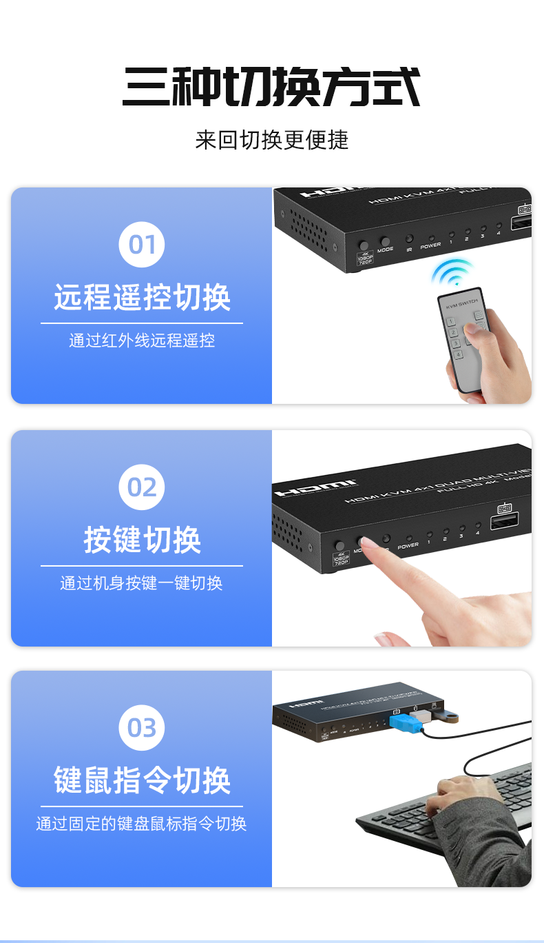 6.切換方式:紅外遙控切換/按鍵切換/鍵鼠指令切換