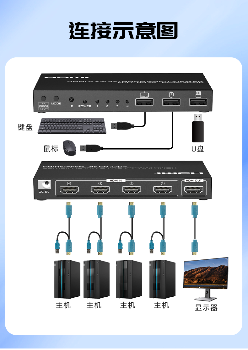 2.產(chǎn)品名稱:HDMI KVM 視頻分割器