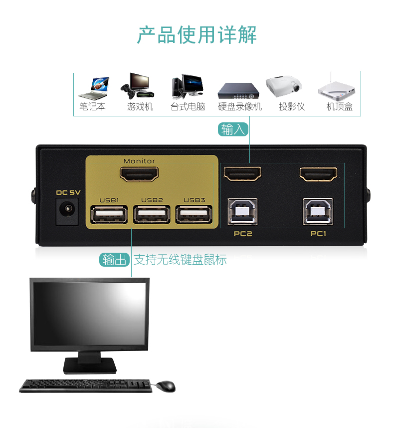 ? 一組USB控制端可管理2臺HDMI接口電腦及2臺USB接口設(shè)備;