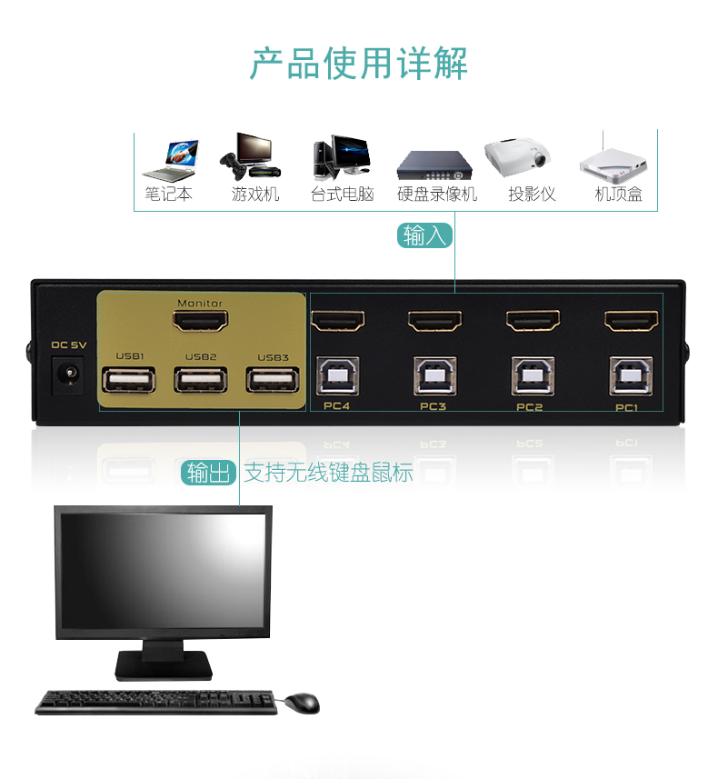 ? 一組USB控制端可管理4臺HDMI接口電腦及4臺USB接口設備;