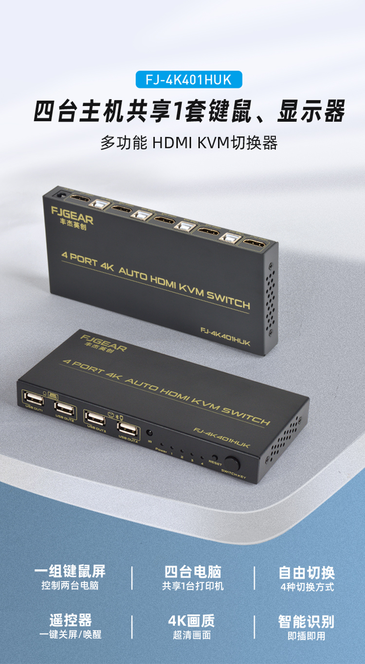 路多功能HDMI KVM切換器,支持4K超清信號(hào)傳輸,有4種