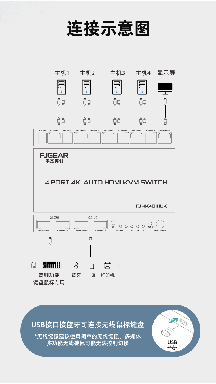 盤、藍(lán)牙適配器等USB設(shè)備,適用于教學(xué)會(huì)議、廣告演示、