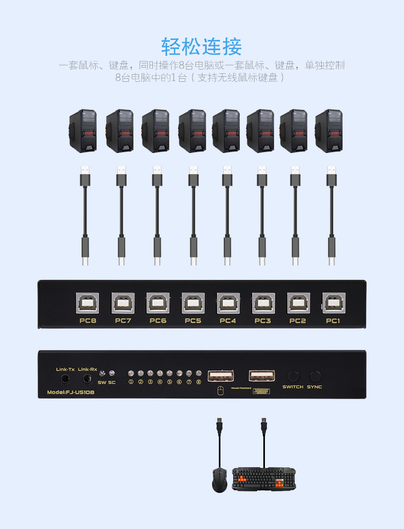 通過本產(chǎn)品你只需一套鼠標(biāo),鍵盤即可分時,或者同時操作多臺電腦,主要廣泛應(yīng)用于辦公,教學(xué),娛樂,軍事,游戲,信息等眾多平臺,它為你節(jié)省時間,金錢,設(shè)備,能源,大大提高你的工作效率,是你工作的好幫手。