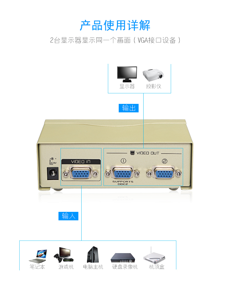 2:該系列VGA分配器有二路、四路、八路等多種端口