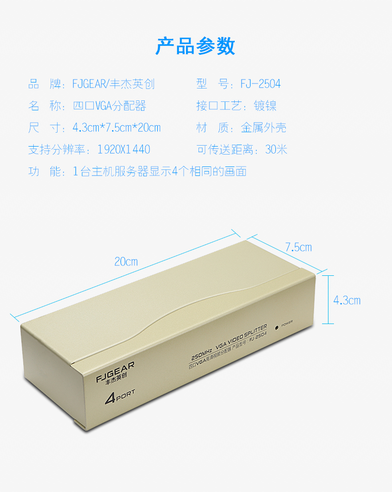 2:該系列VGA分配器有二路、四路、八路等多種端口