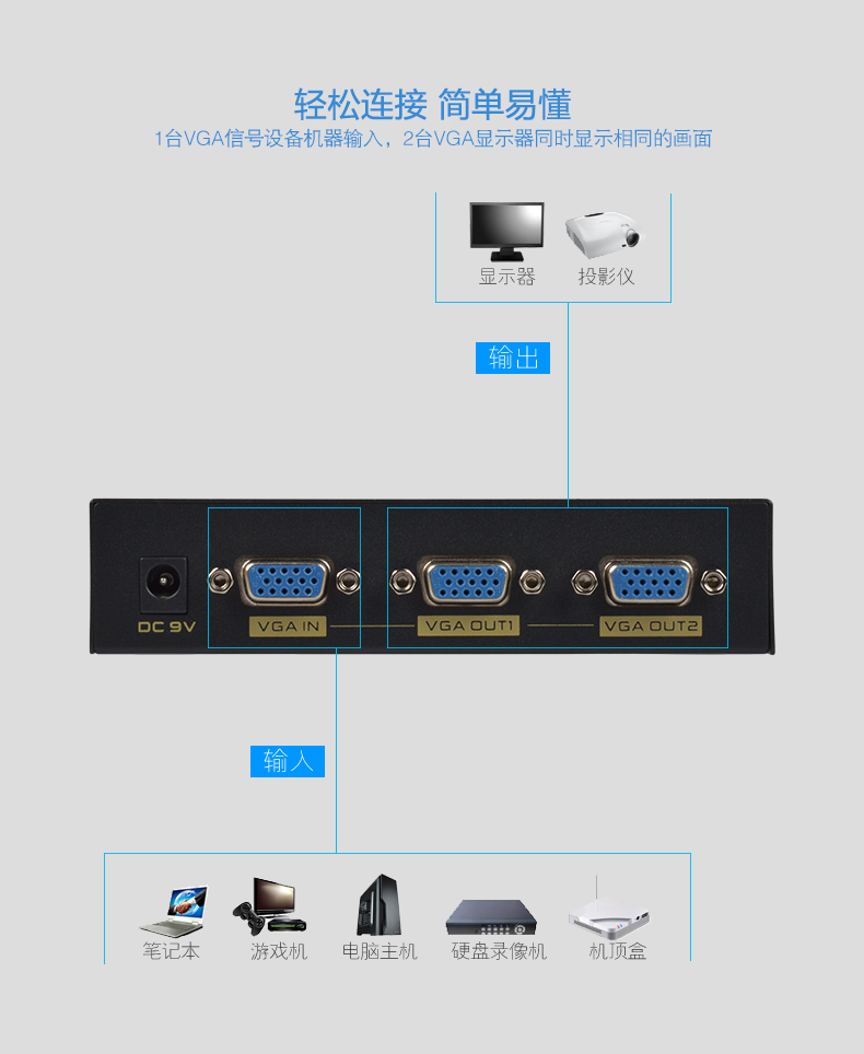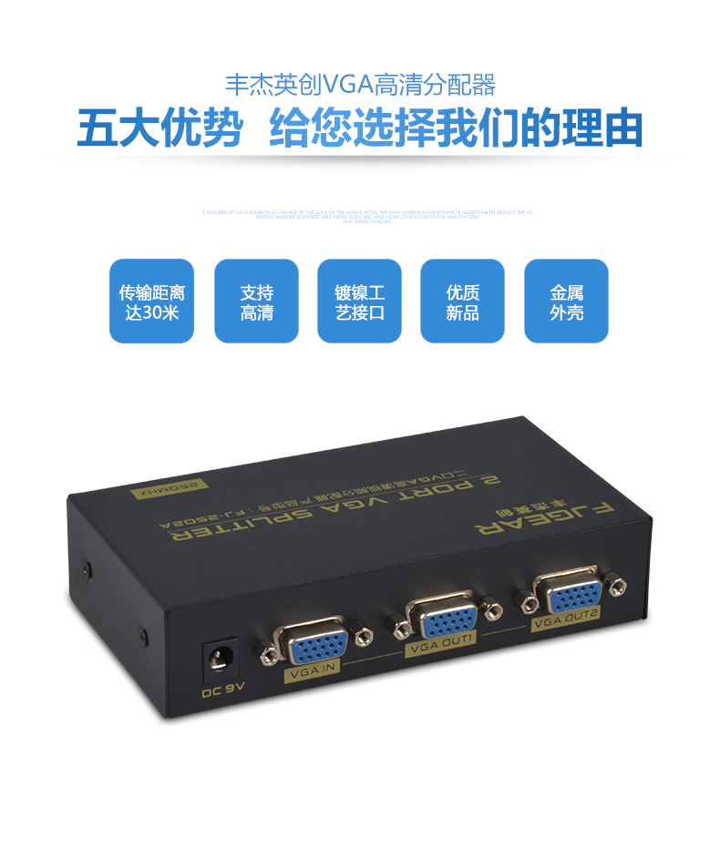 1:250MHz 系列VGA分配器是高清VGA信號分配器,適用于液晶電視機和投影儀等大屏幕顯示設(shè)備。具有長距離驅(qū)動功能