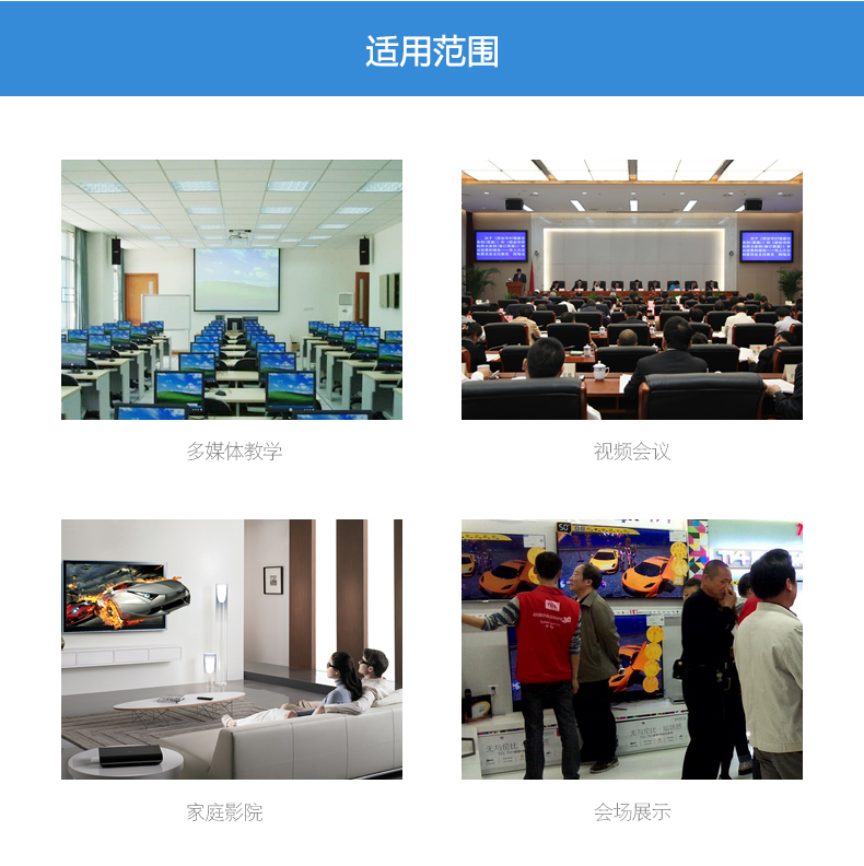應(yīng)用于:視頻會議系統(tǒng),如:投影儀、大屏幕;VGA信號測試,如:顯示器、液晶顯示器;大眾傳媒如:服市行情、時刻表、教學(xué)場所;數(shù)據(jù)中心,咨詢臺等,通過它您只需要一臺主機便可共享2臺顯示器,它為您節(jié)省時間,金錢,設(shè)備,能源,是您工作的好幫手!