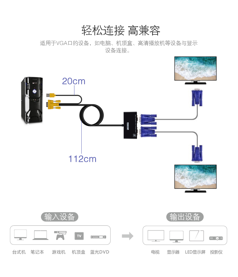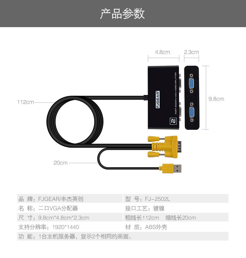 2:該系列VGA分配器有二路、四路、八路等多種端口