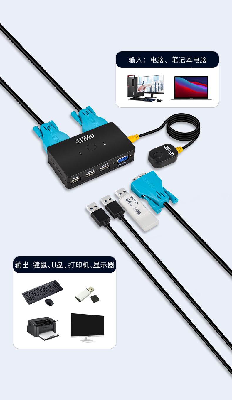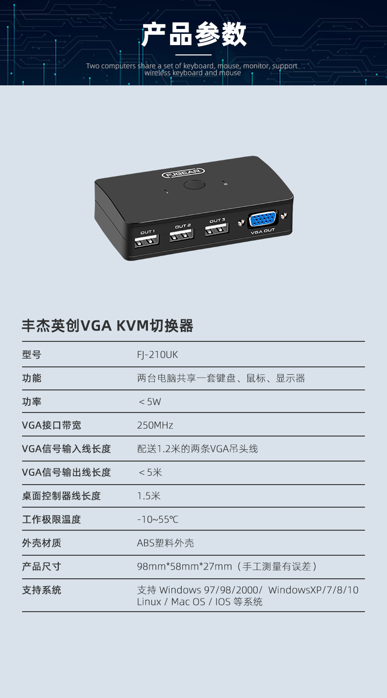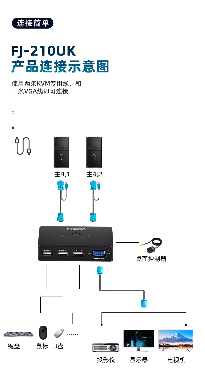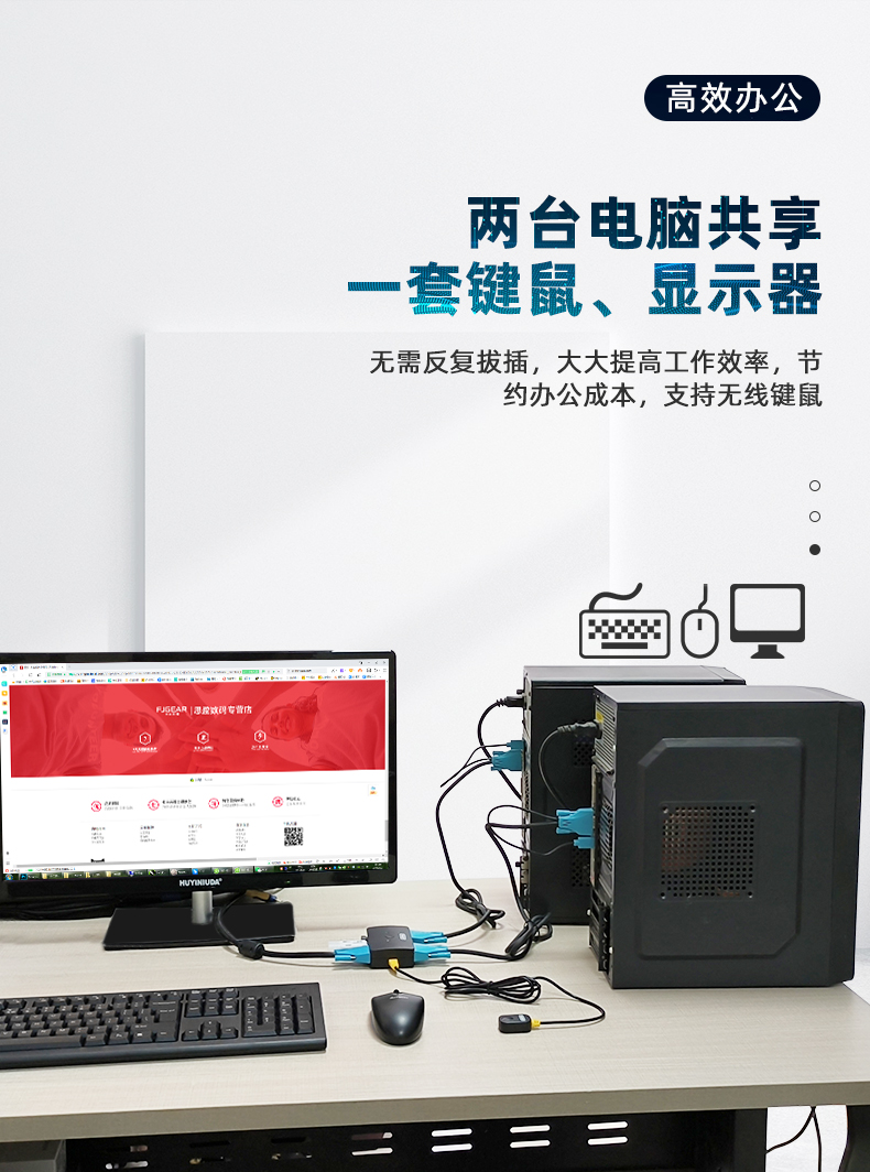 2.功能:兩臺(tái)電腦共享一套鍵盤(pán).鼠標(biāo).顯示器