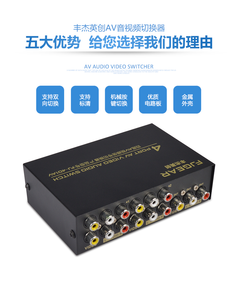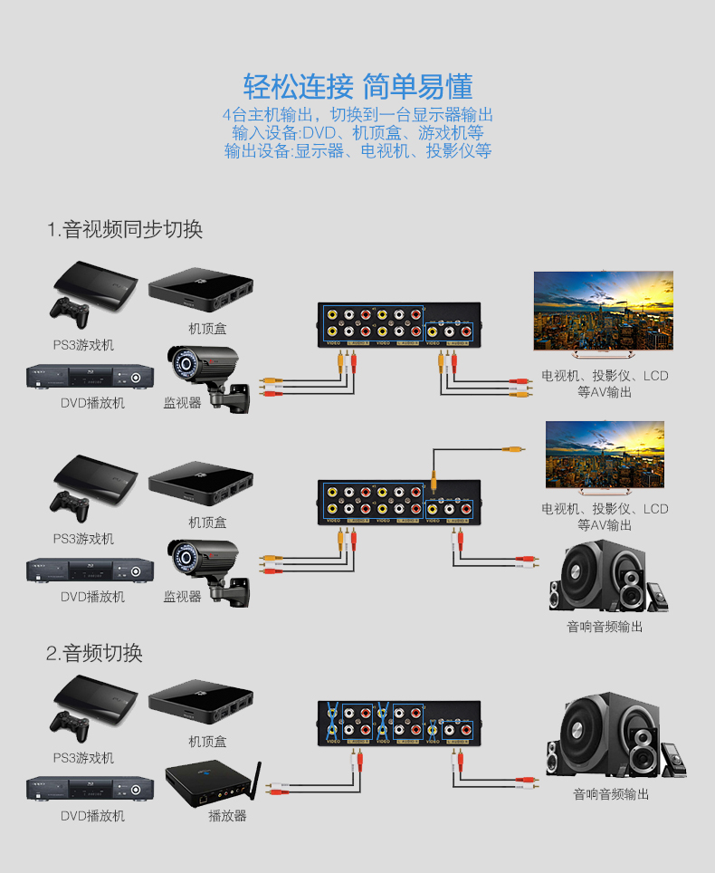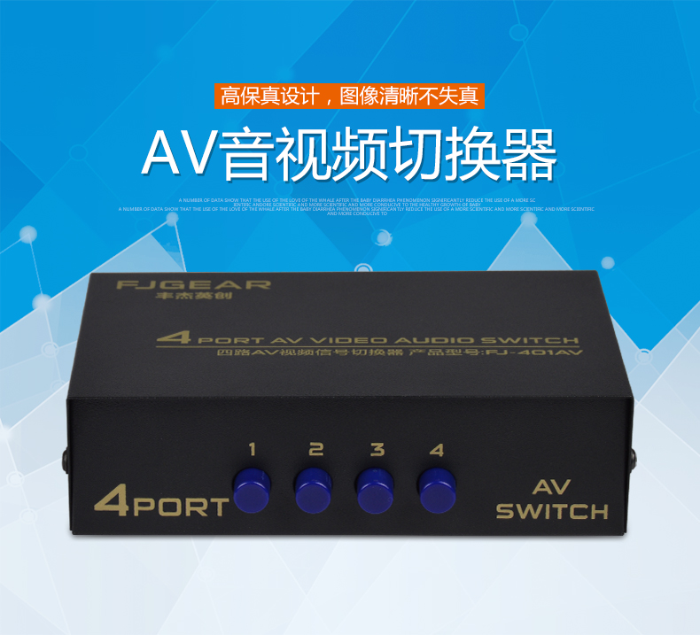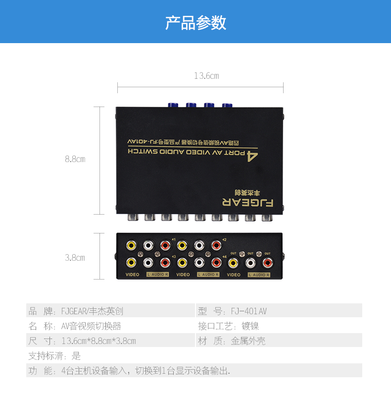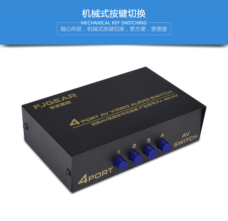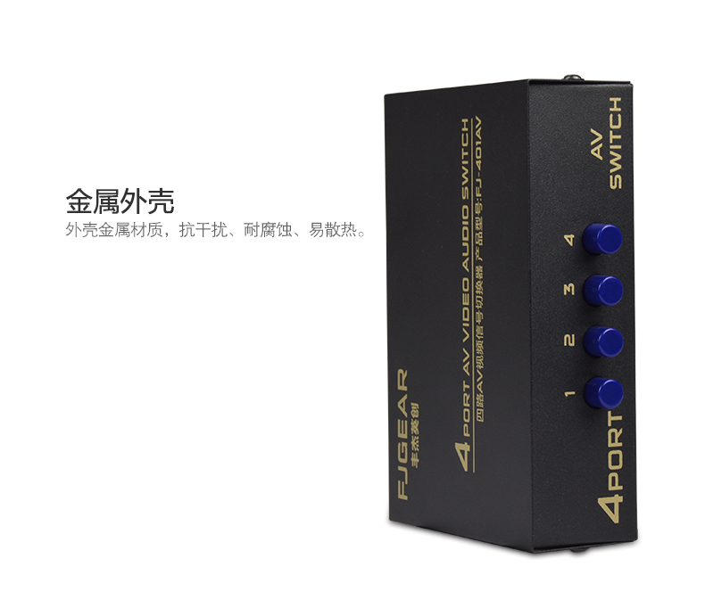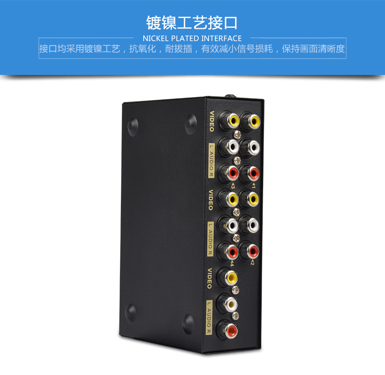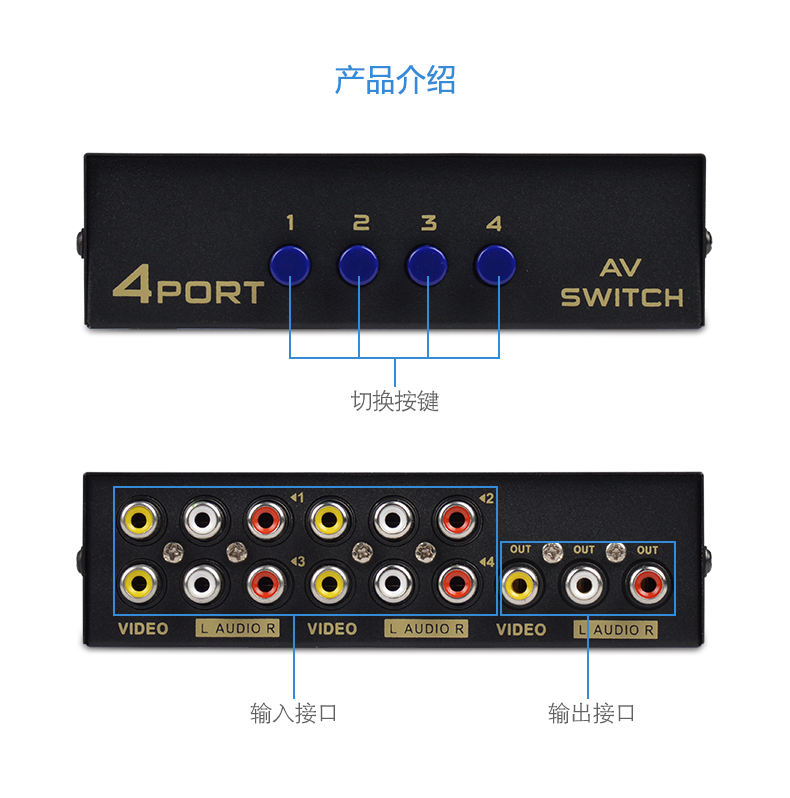 1、4路AV信號輸入,切換1路AV信號輸出;