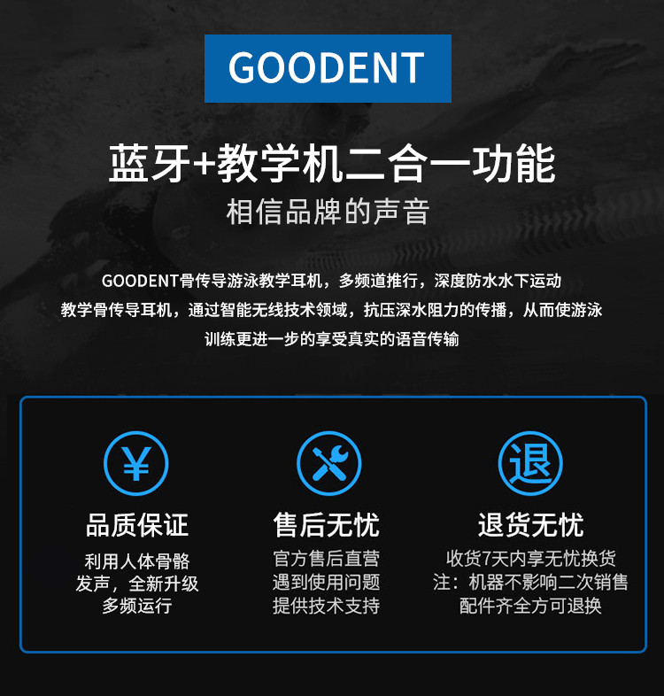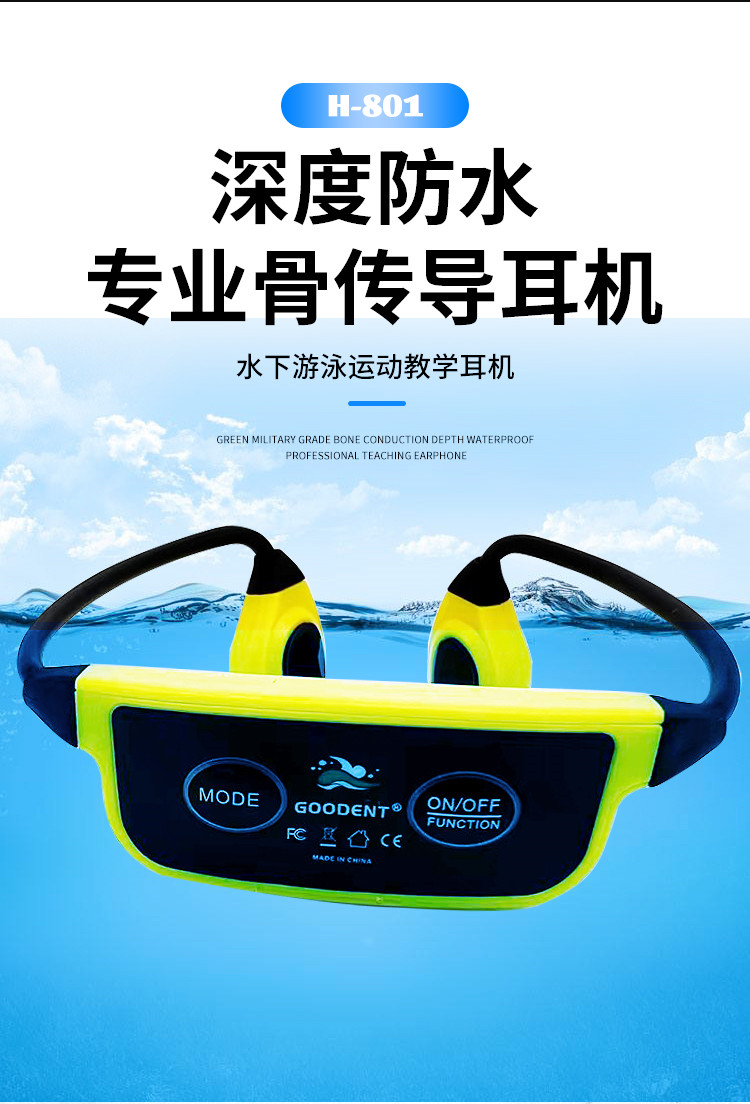 1DORADO骨传导游泳教学耳机,多频道推行,深度防水水下运动教学骨传导耳机