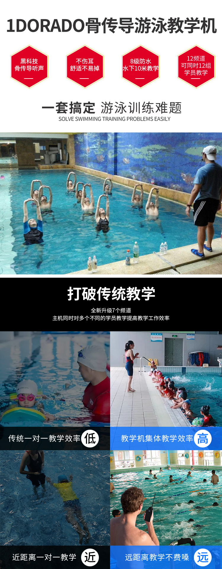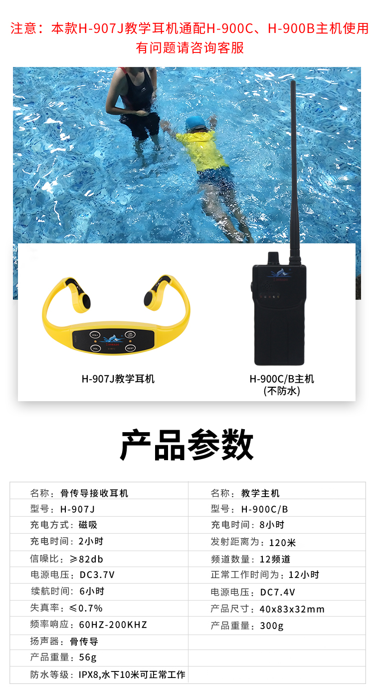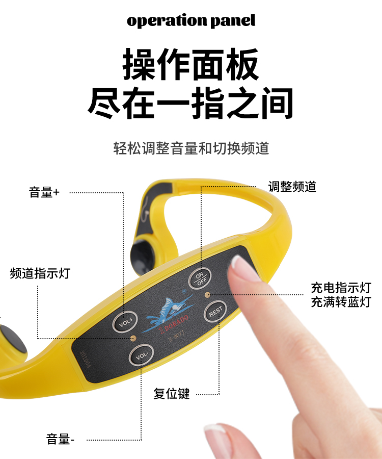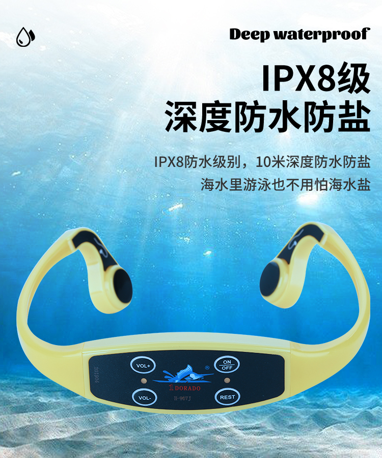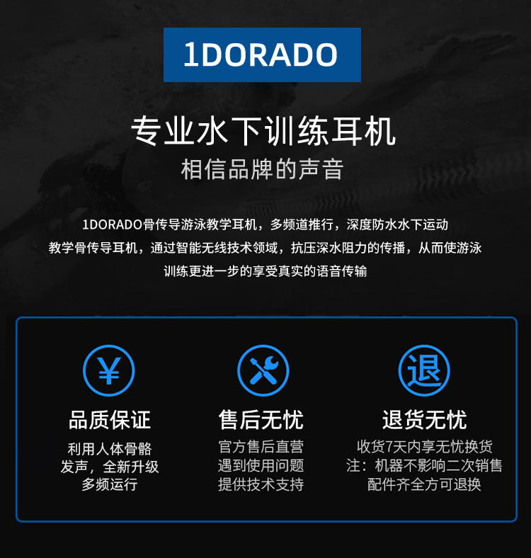 1DORADO骨传导游泳教学耳机,多频道推行,深度防水水下运动教学骨传导耳机