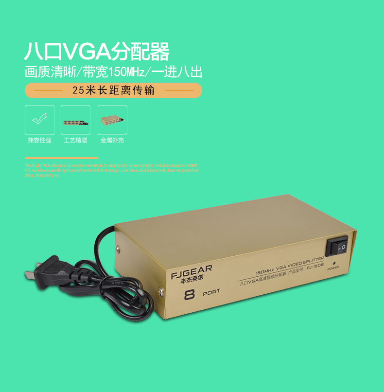 1:150MHz 系列VGA分配器是高清VGA信號(hào)分配器,適用于液晶電視機(jī)和投影儀等大屏幕顯示設(shè)備。