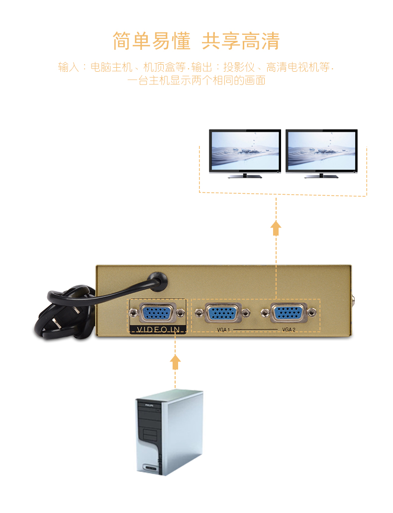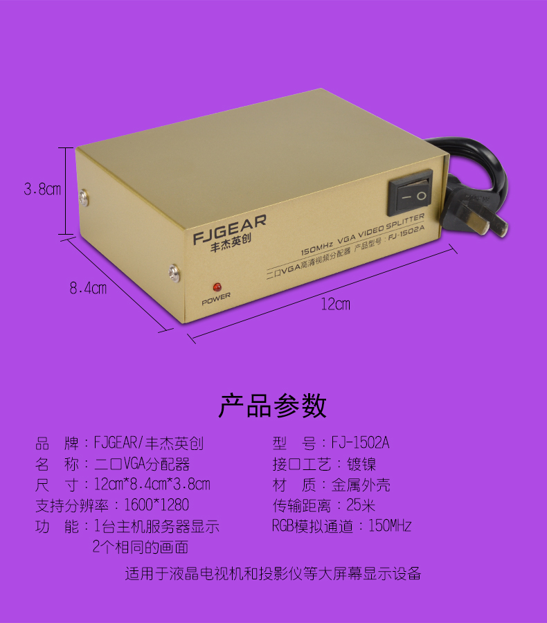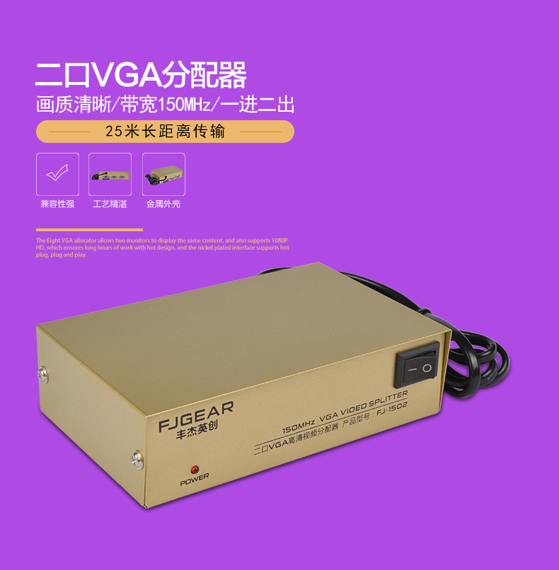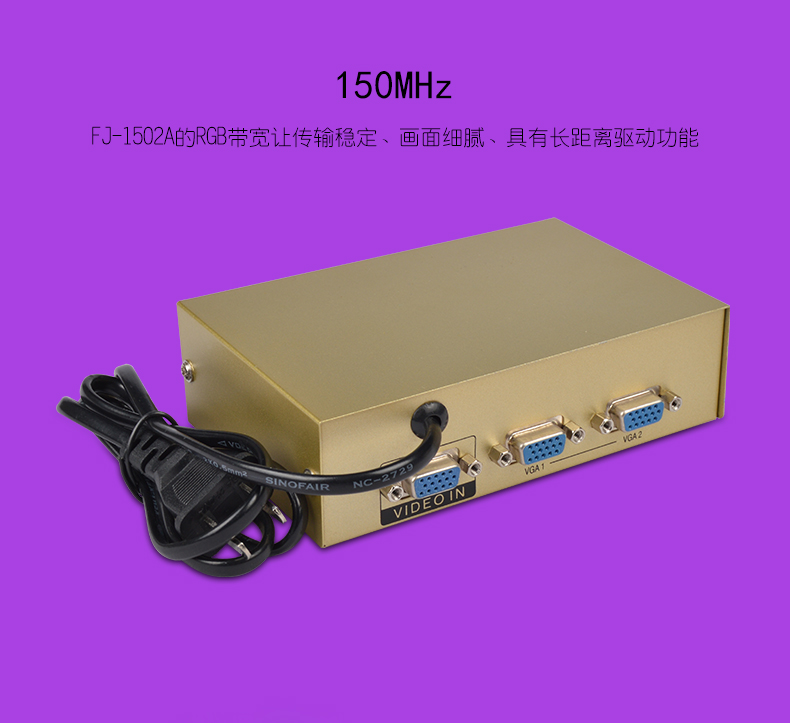 1:150MHz 系列VGA分配器是高清VGA信號分配器,適用于液晶電視機(jī)和投影儀等大屏幕顯示設(shè)備。具有長距離驅(qū)動功能