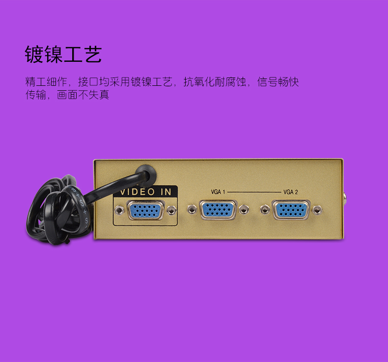 VGA視頻分配器是將一路VGA信號輸入通過集成芯片視頻分配成多路VGA信號輸出的視頻處理設(shè)備,具有高性能、大帶寬、視頻大功率模擬集成電路,多極點(diǎn)頻率補(bǔ)償及增益提升技術(shù)。