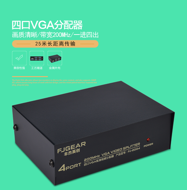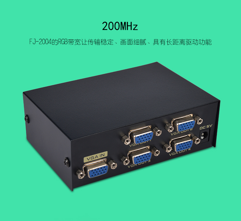 1:200MHz 系列VGA分配器是高清VGA信號(hào)分配器,適用于液晶電視機(jī)和投影儀等大屏幕顯示設(shè)備。具有長距離驅(qū)動(dòng)功能