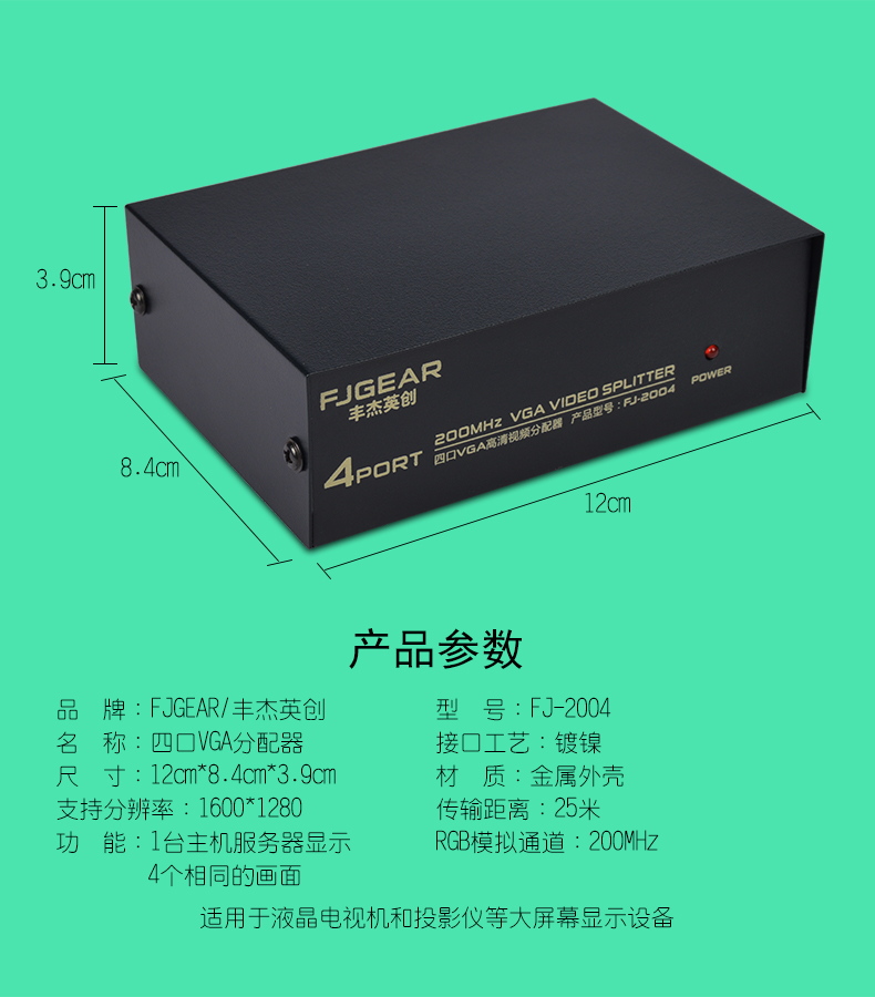 2:該系列VGA分配器有二路、四路、八路、十六路等多種端口
