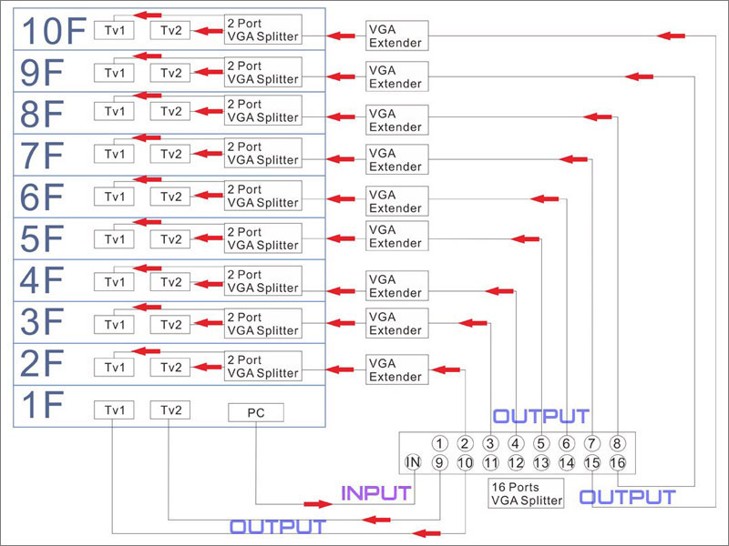 Malaysia Mr J recently to provide a new building building advertising video link, so let us help. Mr J to implement to realize each layer of a 10 layer building elevator video ads to synchronize two plan, master control room on the first floor. We design the following plan to Mr J.