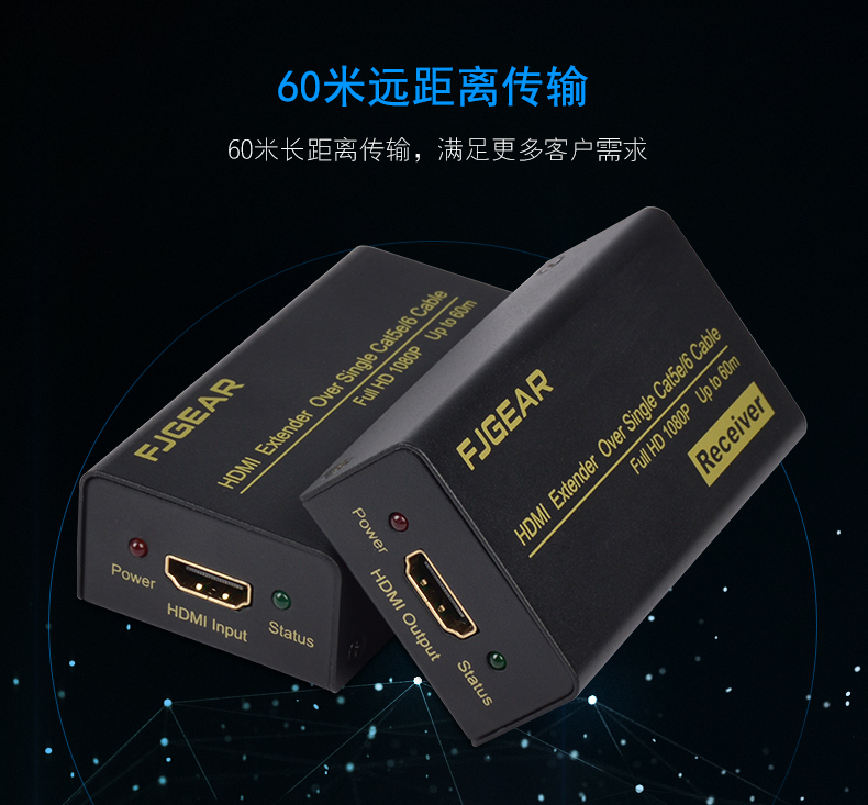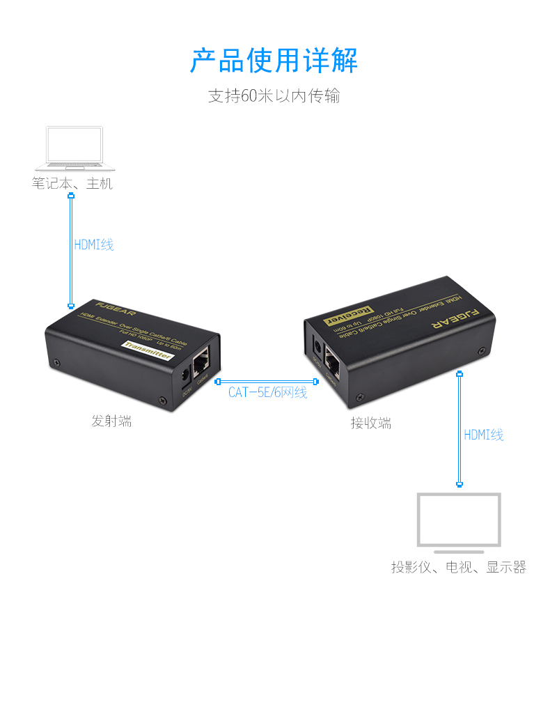 2.采用CAT-5E/6網(wǎng)線代替HDMI線來實現(xiàn)遠距離傳輸