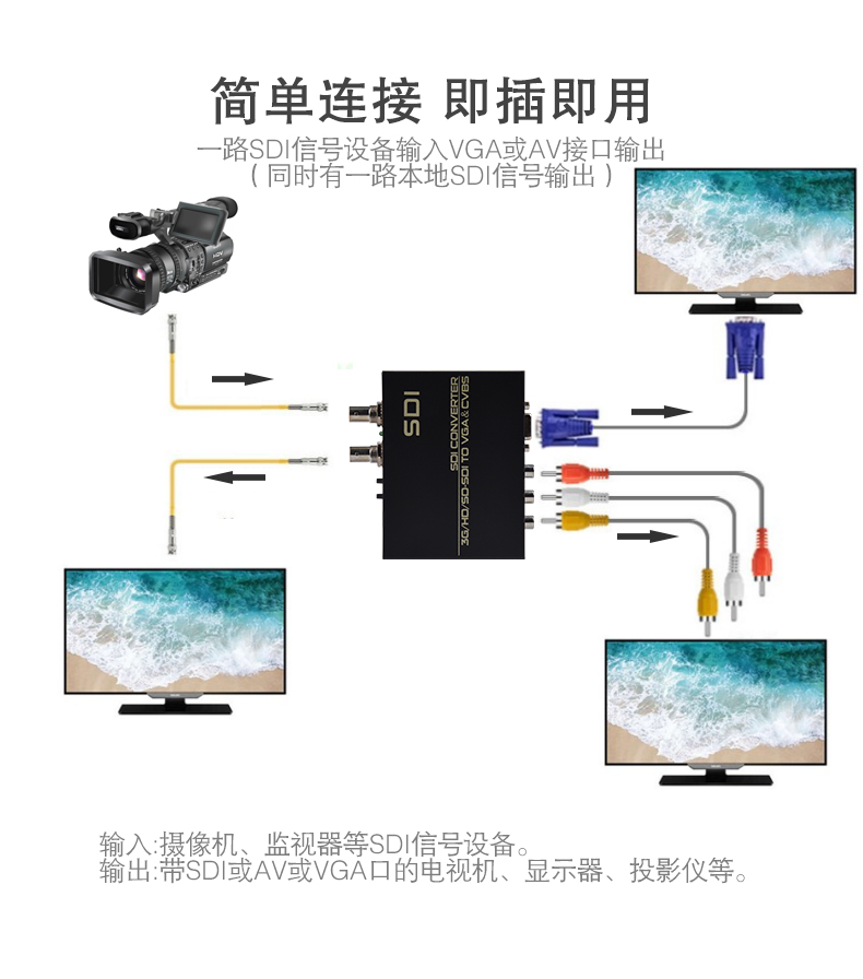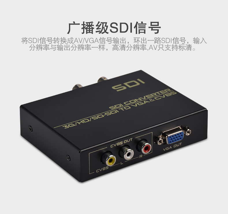 本產(chǎn)品提供一路(SD-SDI/HD-SDI/3G-SDI)SDI信號轉(zhuǎn)換成VGA或者AV信號,支持全高清SDI信號的輸入及輸出;操作簡單易用,穩(wěn)定性和可靠性極高;廣泛應(yīng)用于SDI信號的各級電視臺播出機(jī)房和非編制作領(lǐng)域以及安防監(jiān)控、培訓(xùn)展示場所等領(lǐng)域。