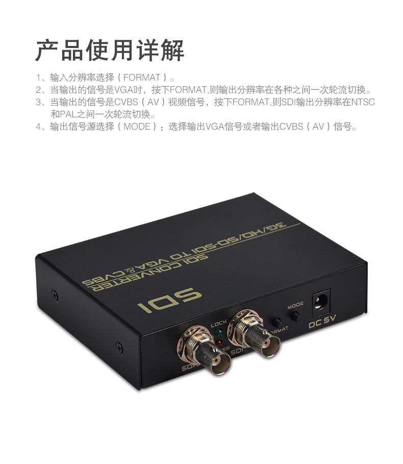 當(dāng)輸出的信號是CVBS(AV)視頻信號,按下FORMAT按鍵,則輸出分辨率在NTSC和PAL之間一次輪流切換。