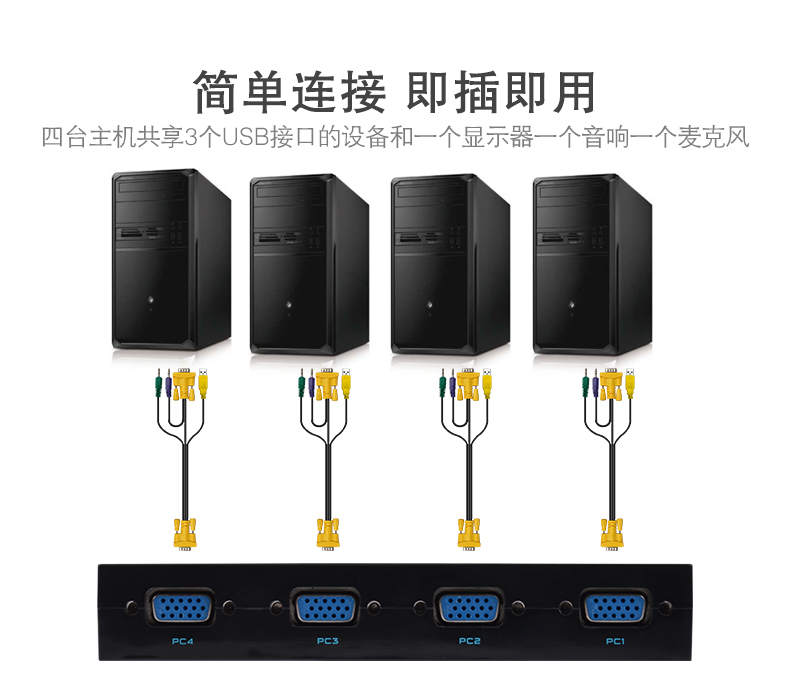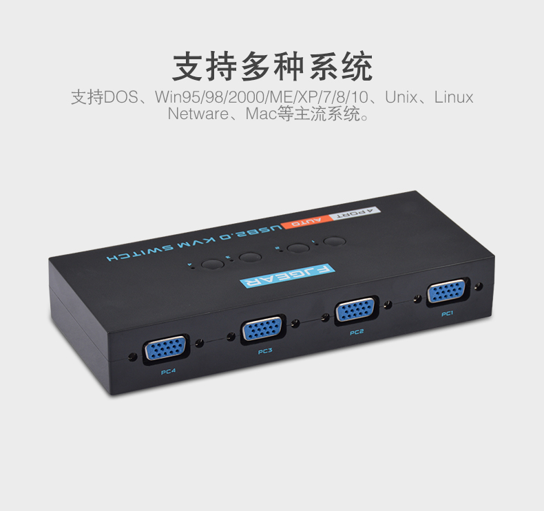 401UA是四臺電腦(服務器)的KVM(鍵盤、視頻、鼠標 Keyboard、Video、Mouse)切換器。通過它,只需一套USB接口的鍵盤鼠標和普通顯示器便可查看和操作與KVM切換器連接的任意一臺電腦(服務器),KVM切換器還備有一個USB插口供用戶插U盤,方便文件資料的拷貝,給我們的工作帶來極大的便利。