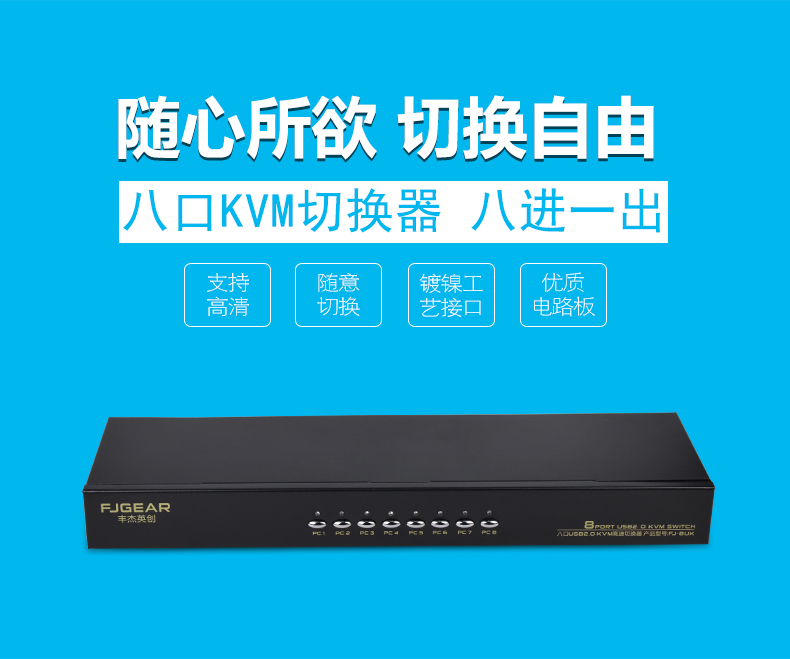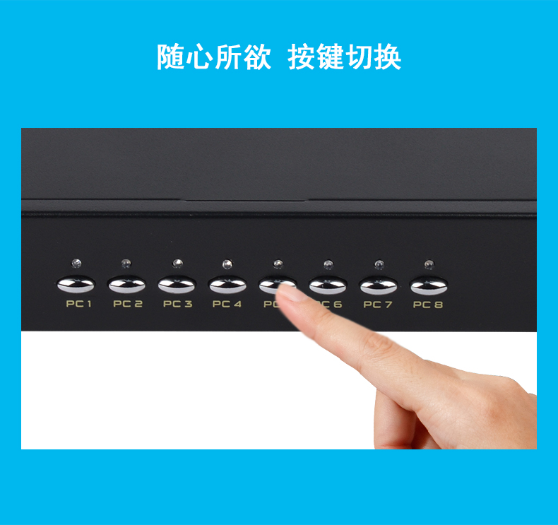 可手動(dòng)按鍵切換來(lái)實(shí)現(xiàn)多臺(tái)電腦間的切換。