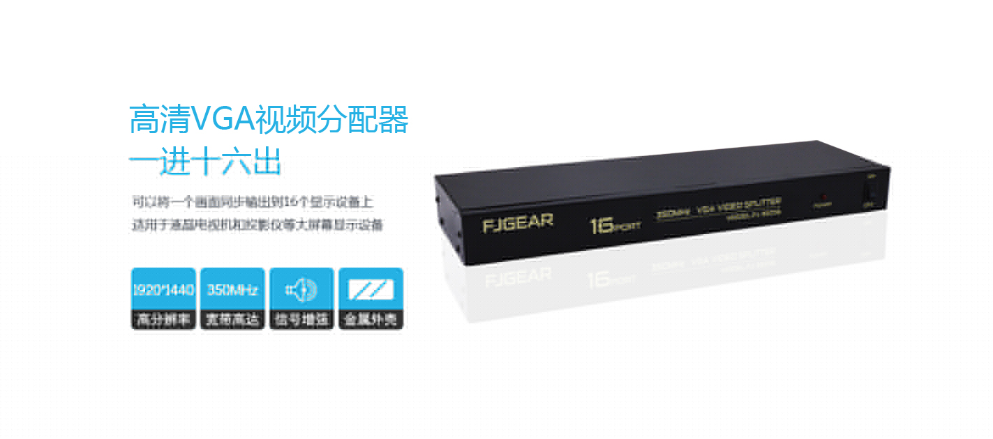 1:350MHz 系列VGA分配器是高清VGA信號分配器,適用于液晶電視機和投影儀等大屏幕顯示設備。具有長距離驅動功能