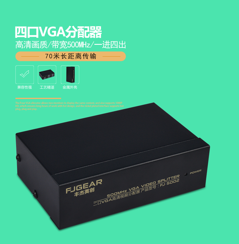 1:500MHz 系列VGA分配器是高清VGA信號(hào)分配器,適用于液晶電視機(jī)和投影儀等大屏幕顯示設(shè)備。具有長距離驅(qū)動(dòng)功能