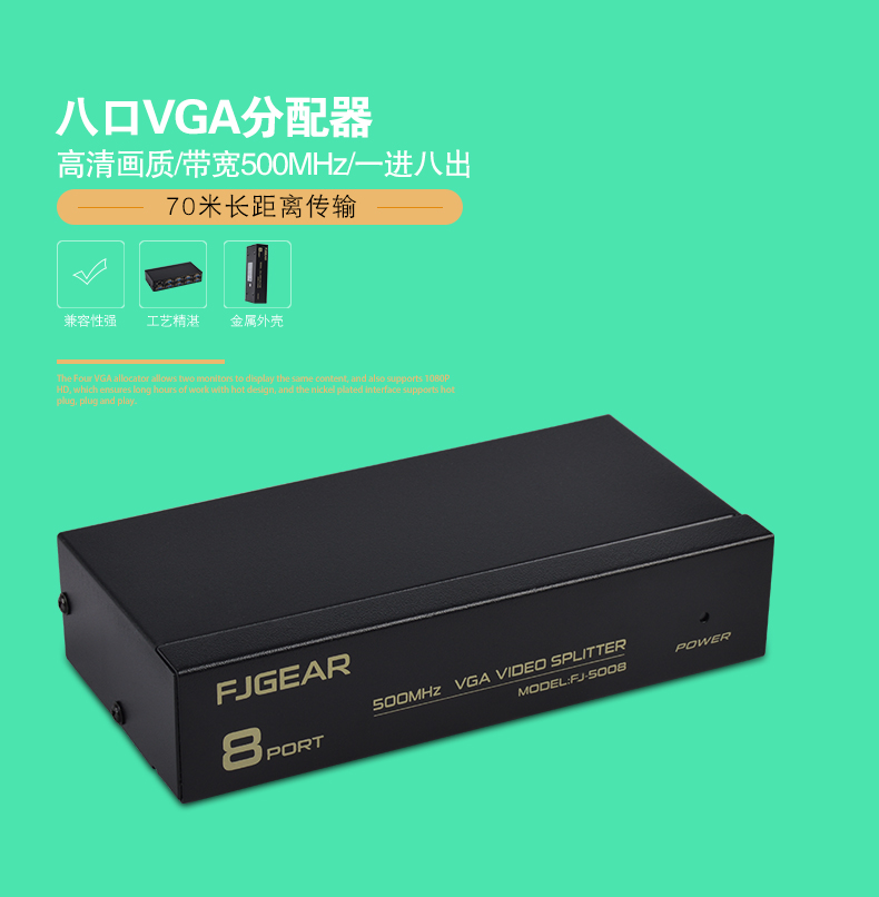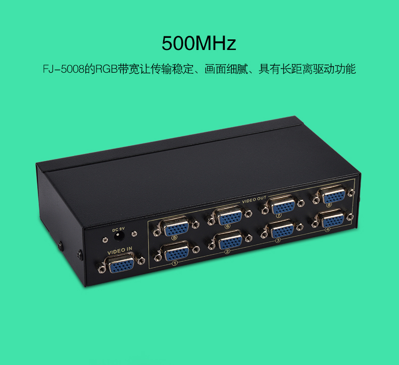 1:500MHz 系列VGA分配器是高清VGA信號分配器,適用于液晶電視機和投影儀等大屏幕顯示設備。具有長距離驅動功能